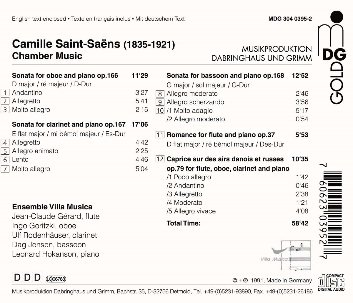 Caprice op. 79 für Flöte, Oboe, Klarinette und Klavier.